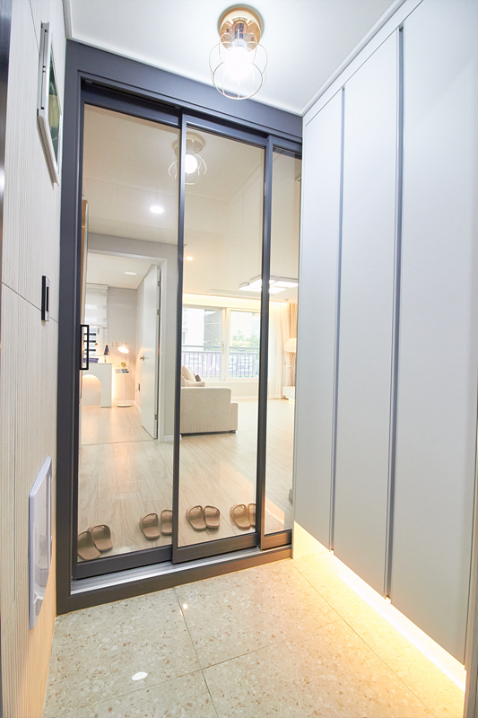 주차 100% / 국내산 LED 전등 / 3단 슬라이딩 중문 / 냉장고 옵션 가능