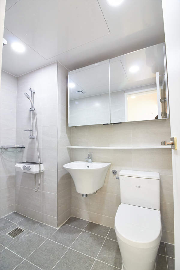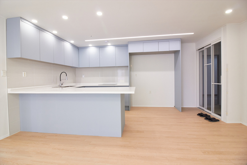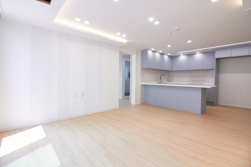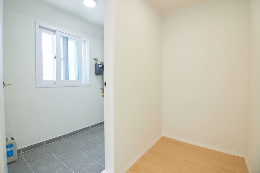 강마루, 현관 슬라이딩 중문, 신발장, 욕실 고압세척기, 코콤 컬러 인터폰, 린나이 가스보일러, 국산 LED 전등,